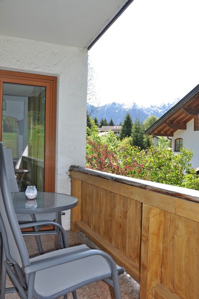 Das schöne Bergpanorama können Sie vom sonnigem Südbalkon mit Balkonmöbel genießen.